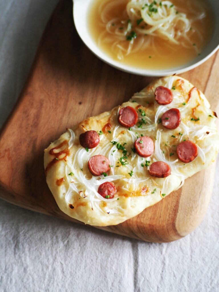 新玉ねぎのスープとピザを作ります。